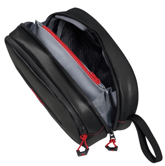 The main outer fabric, the inner lining, the outer and inner zippers are made with the equivalent of 5 recycled PET bottles (0.5l - 20g).