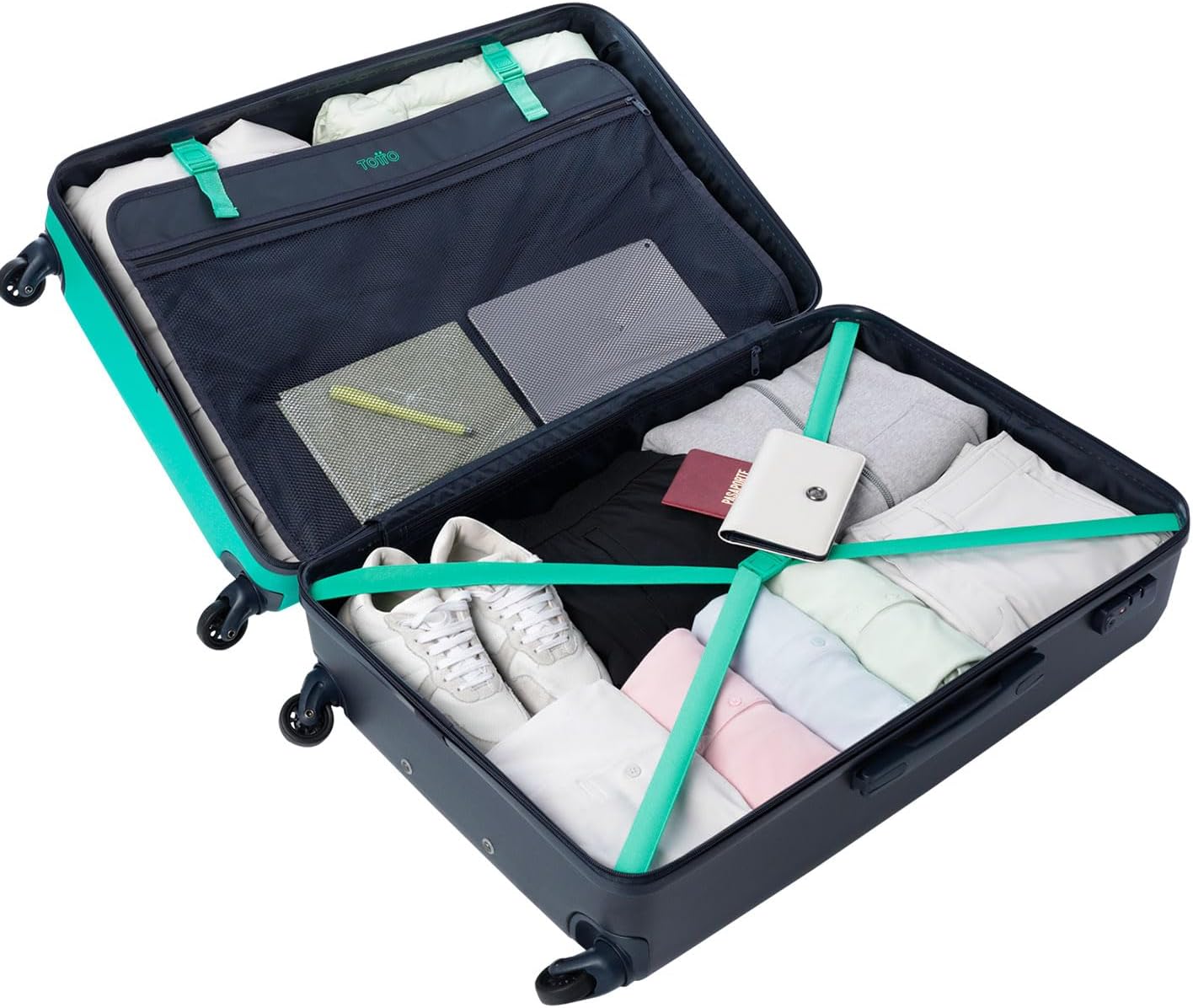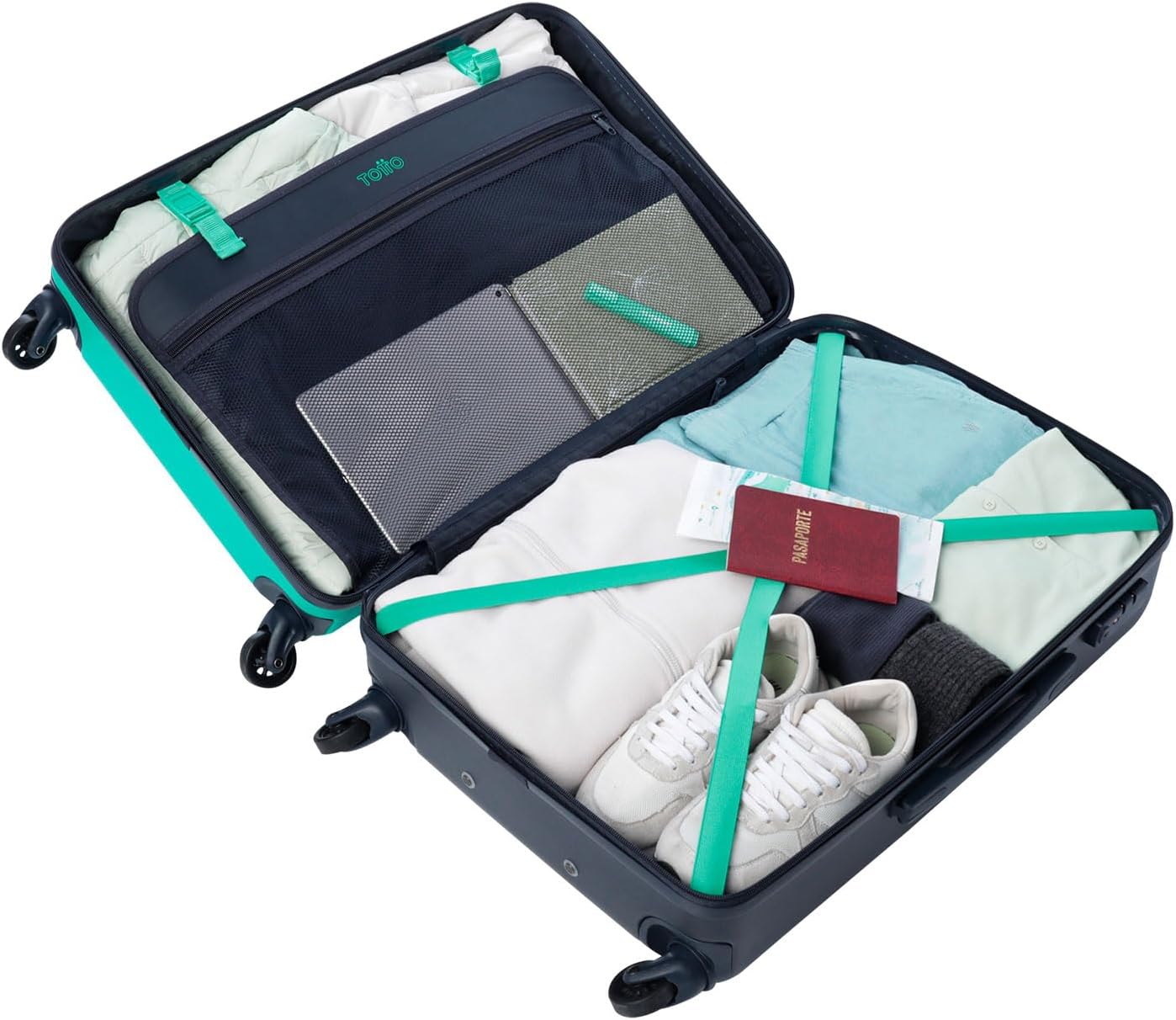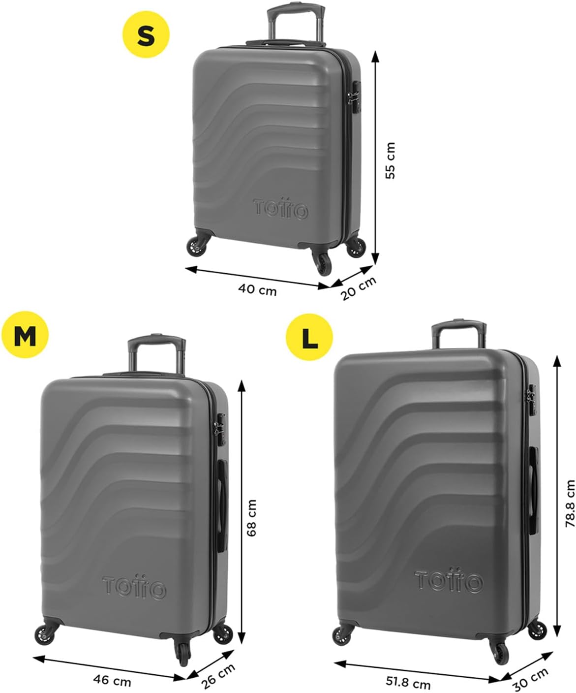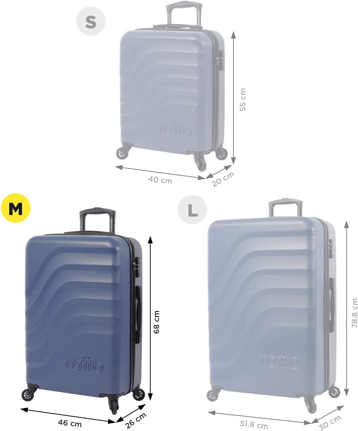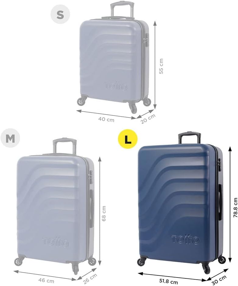 "TOTTO" - Big rigid suitcase, 51.8 x 78.8 x 30 cm, Capacity: 98 L, high impact resistance, 360º wheels, telescopic handle, internal compression straps, TSA lock,