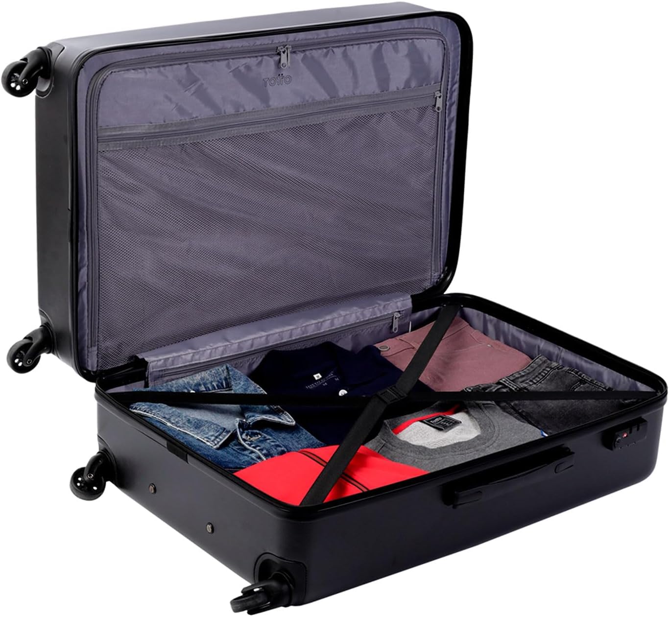 "TOTTO" - Big rigid suitcase, 51.8 x 78.8 x 30 cm. Capacity 98 L, high impact resistance, 360º wheels, telescopic handle, internal compression straps, TSA lock