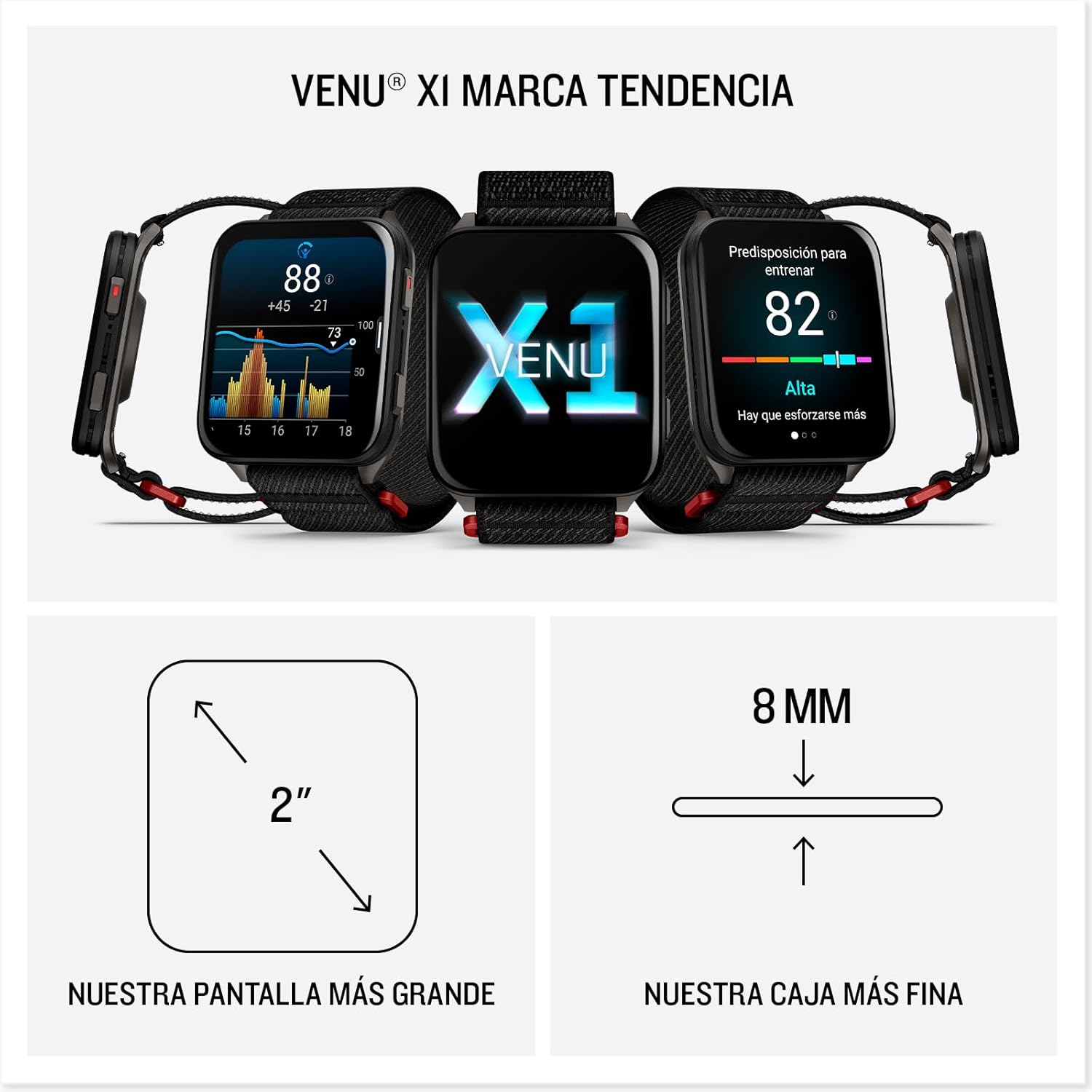"Garmin" Venu X1, Smartwatch Premium con GPS, Pantalla AMOLED de 2'', Funciones de Salud y Bienestar 24/7, Altavoz y Micrófono Integrados