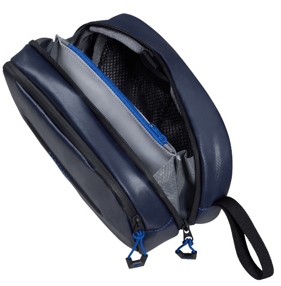 The main outer fabric, the inner lining, the outer and inner zippers are made with the equivalent of 5 recycled PET bottles (0.5l - 20g).